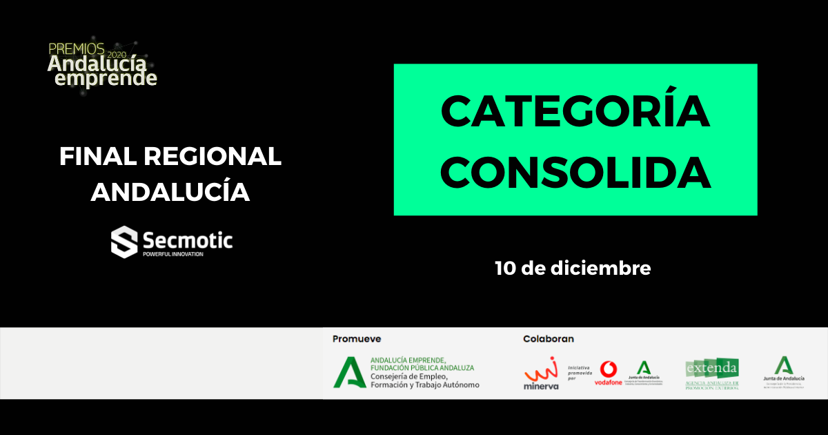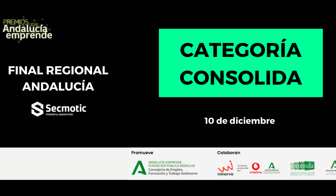 El pasado 18 de noviembre tuvieron lugar en Sevilla los Premios Andalucía Emprende 2020 en los que participó Secmotic. Se trataba de la 7ª edición de estos premios, y como de costumbre las categorías en las que participar eran dos: Crea y Consolida.
